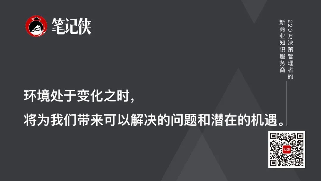 环境中的一切都将发生变化,当变化发生之时,是问题产生之际,也是机遇到来的时刻。