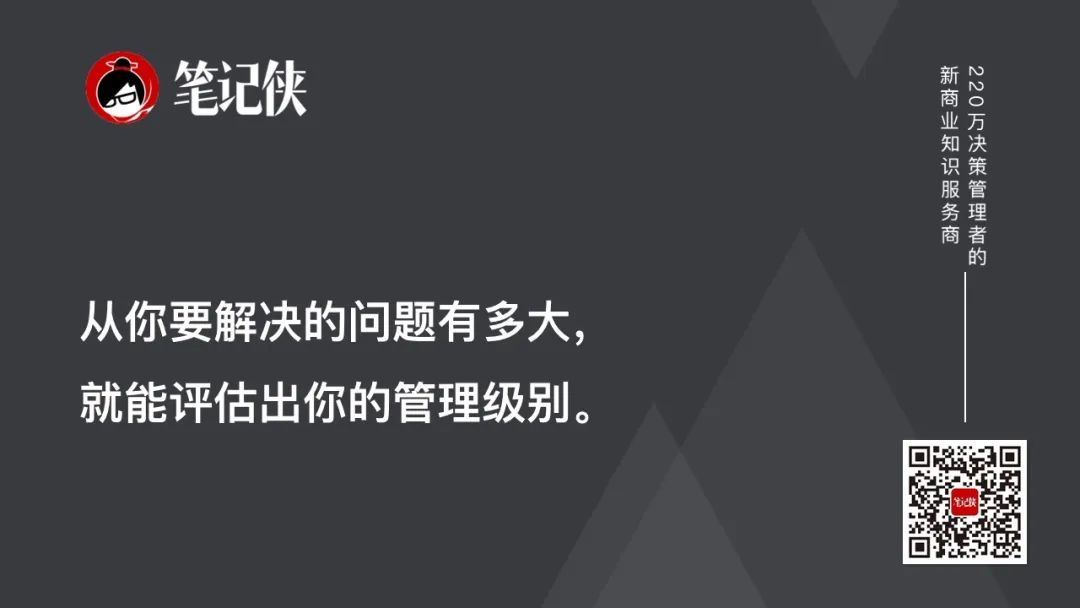例如,通过管理者试图解决问题的大小,来衡量他的管理者级别。小人物处理小问题,大人物(比如国家元首等)则处理大问题。从你要解决的问题有多大,就能评估出你的管理级别。
