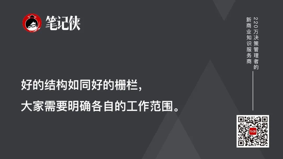 好的结构如同好的栅栏,大家需要明确各自的工作范围。否则,职责不明会造成工作任务的重复或遗漏,相互之间产生芥蒂,还没有人去解决问题。