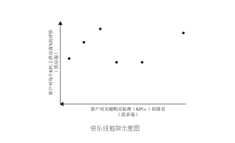 弗雷德将供给和需求这两股力量用数据在二维框架中呈现:横轴表示需求端,即顾客的购买标准;纵轴表示供应端,即顾客对供应商的评价。