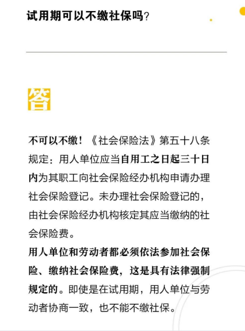 【人社日课·12月8日】试用期可以不缴社保吗?