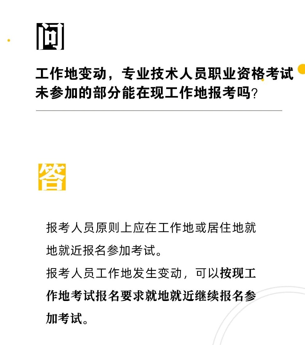 【人社日课·1月18日】工作地变动,专业技术人员职业资格考试未参加的部分能在现工作地报考吗?