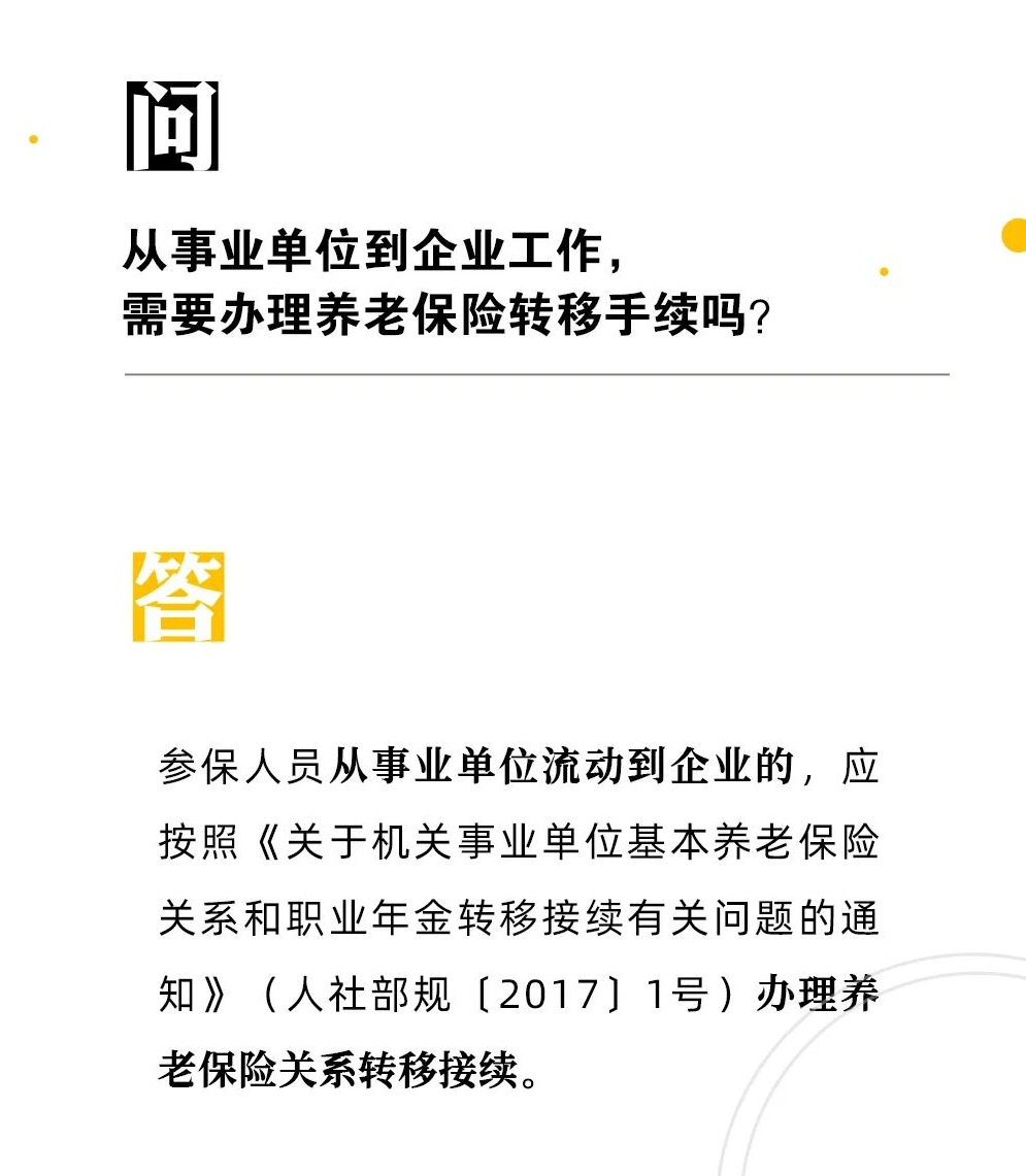 【人社日课·2月8日】从事业单位到企业工作,需要办理养老保险转移手续吗?