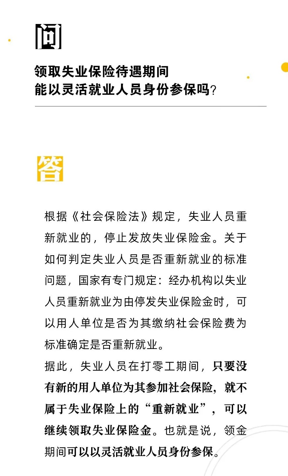 【人社日课·2月10日】领取失业保险待遇期间能以灵活就业人员身份参保吗?