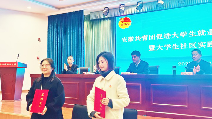 现场县区团书记代表与高校团书记代表签署合作协议共同为高校毕业生做好服务