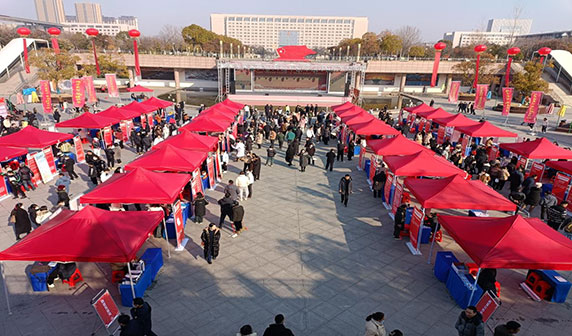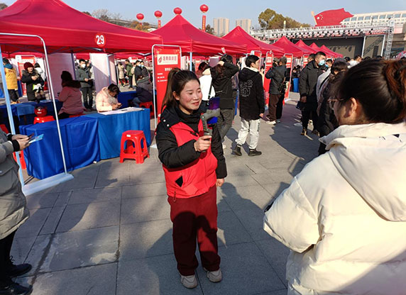 1月27日上午。淮南市“千企进校园 万岗进万家”暨“春风送岗 耀启高新”专场招聘会在市人民公园1952广场举行。