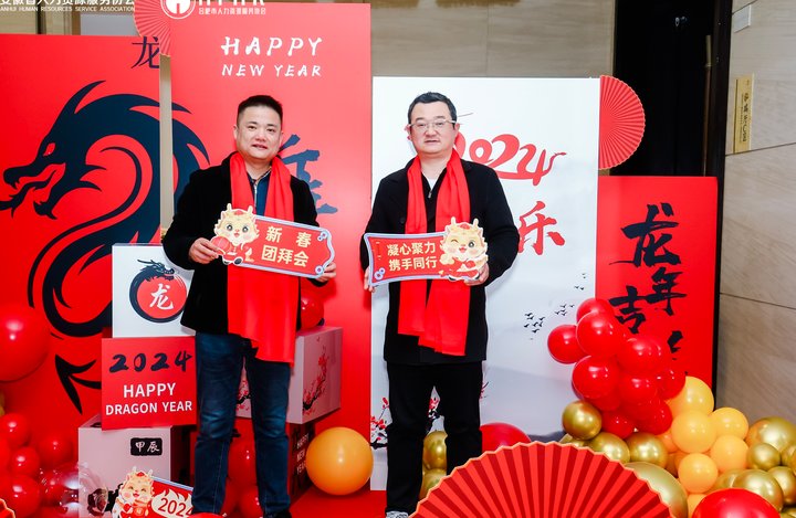2024年1月26日,由安徽省人力资源服务协会和合肥市人力资源服务协会联合举办的“凝心聚力・携手同行”新春团拜会在泓瑞金陵大酒店隆重举行。在新年来临之际,协会业务指导部门领导、协会会员单位代表、各市人力资源服务协会代表等300余人欢聚一堂,共度联欢。