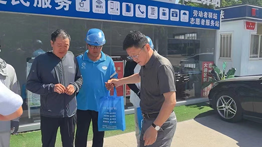 (安徽合心人才集团总经理马磊代表集团党支部为城管值班亭及环卫工人送去防暑降温物品。)
