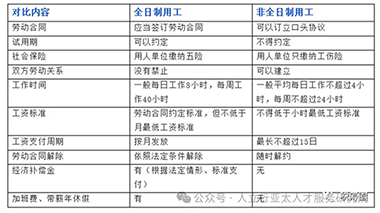 非全日制用工与全日制用工的区别(来源于“税务圈”公众号)