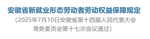 《安徽省新就业形态劳动者劳动权益保障规定》已经2025年7月10日安徽省第十四届人民代表大会常务委员会第十七次会议通过,现予公布,自2025年9月1日起施行。