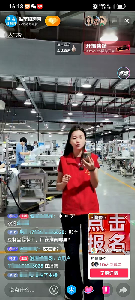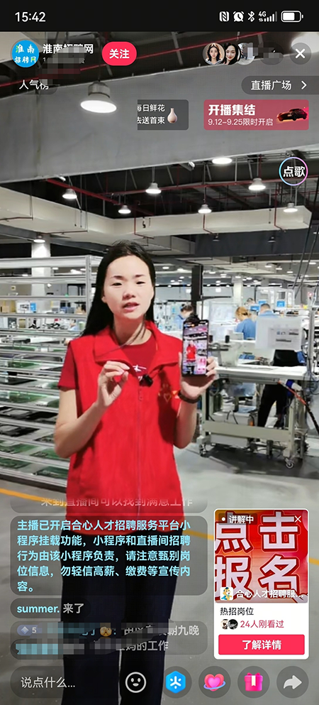 为精准搭建校企、政企人才对接桥梁,助力本地重点企业招才引智,9月8日,淮南招聘网走进谢家集区新南港智能安全零部件有限公司,通过线上直播平台将直播间直接“搬”进了新南港公司的现代化生产车间。通过淮南招聘网专业主播的细致讲解和镜头引领,广大求职者得以“云参观”企业先进的生产线、智能化制造设备以及高标准的工作环境,沉浸式地感受了企业的技术实力与文化氛围,重点推介了包括智能制造操作员、质量检测员、设备维护技师在内的多个优质岗位,并清晰说明了薪资待遇、福利保障、晋升通道及人才培养计划,与线上观众进行了热烈的实时互动与答疑。“这种形式的招聘非常直观、透明,让我们足不出户就能全方位了解企业的工作场景和岗位要求,比只看文字描述靠谱多了!”一位在线观看直播的求职者在评论区留言道。