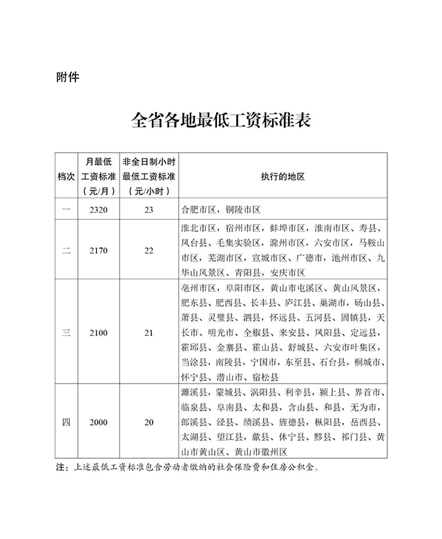 安徽省人民政府办公厅关于调整全省最低工资标准的通知