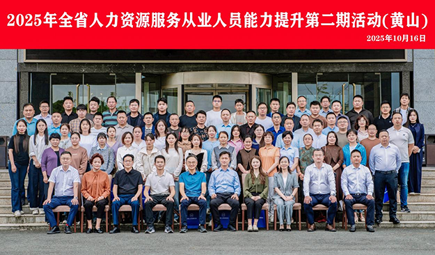 本报讯 为提升团队专业素养,把握行业前沿动态,10月16日至17日,由集团领导带队,我司同仁赴黄山国际大酒店,参加了由安徽省人力资源和社会保障厅主办、安徽省人力资源服务协会承办的“2025年全省人力资源服务从业人员能力提升活动(第二期)”。
