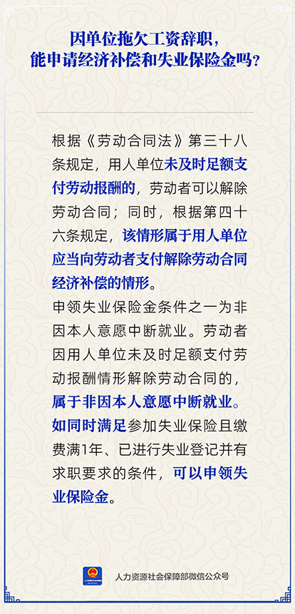 因单位拖欠工资辞职,能申请经济补偿和失业保险金吗?