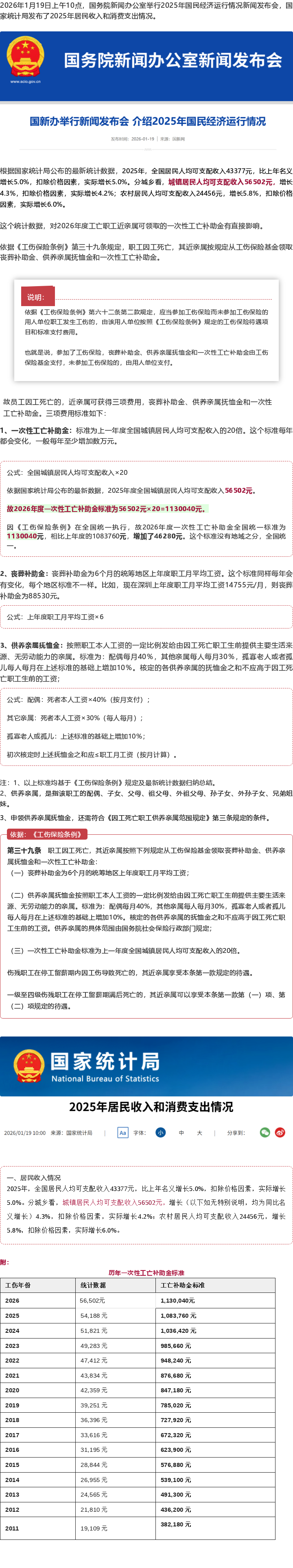 重磅:2026年度最新工伤死亡赔偿标准公布