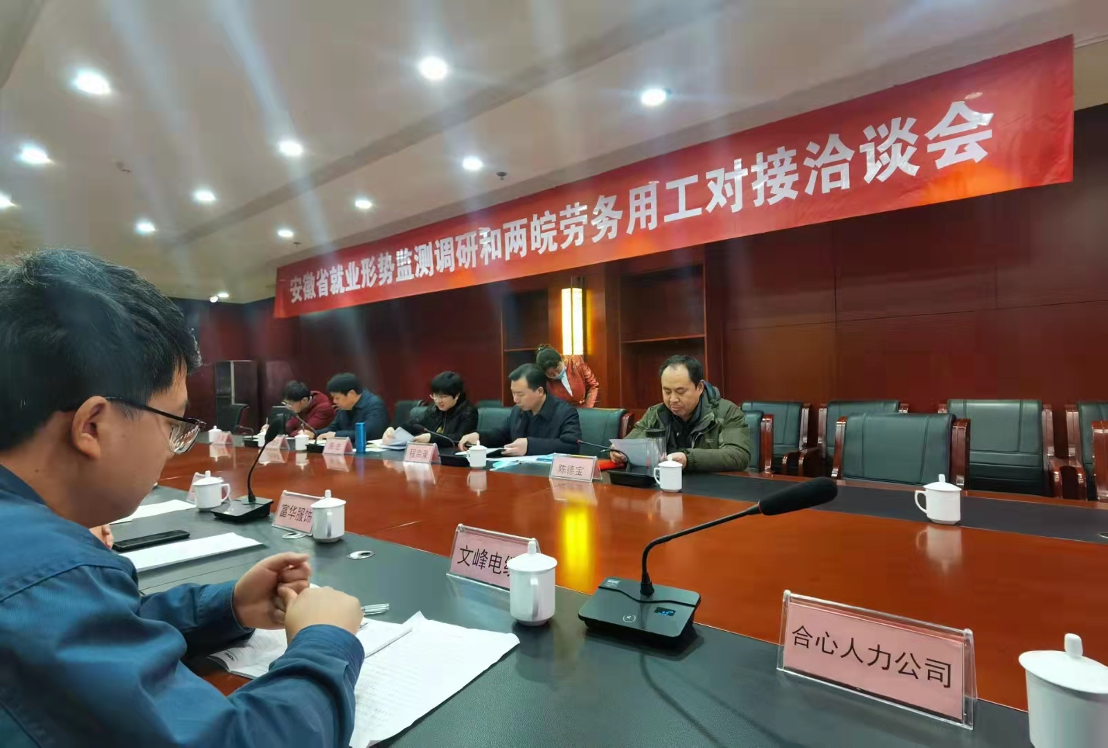 借助此次两皖(淮南)劳务用工对接会的举办契机,省劳动就业服务局陈宏局长,省人社厅农民工工作处徐增开处长、就业失业处程宗录处长、职业能力建设处徐文军副处长一行,淮南市人力资源和社会保障局王怀义局长,副局长张新辉及淮南市产业园区代表,经济开发区代表,人社部门代表,劳务输出大镇堰口镇代表,企业代表,高校代表,人力资源服务机构代表,开展了关于解决企业招工难,用工难和当前就业形式监测开展了调研座谈。